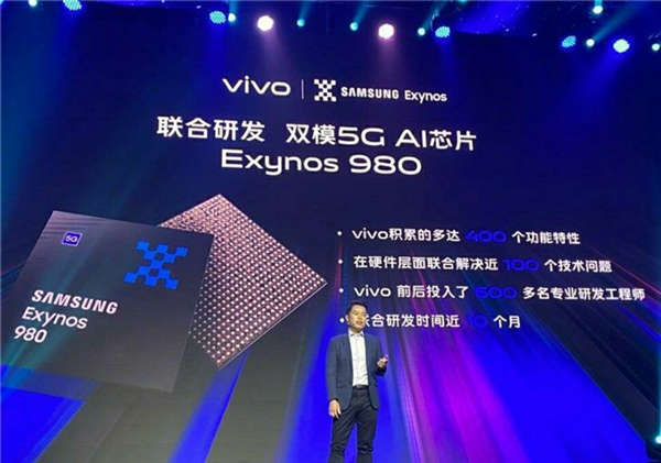 三星Exynos980处理器,集成5G基带,支持sa和nsa双模,CPU采用两个A77大核和6个A55小核,GPU是Mali-G76 mp5,整体性能肯定是要超过目前的华为麒麟810和高通骁龙7系的,定位次旗舰处理器。vivo强调,Exynos 980是一款推动行业向5G上挺进的芯片,同时这枚芯片在AI领域的提升也能大幅提升用户体验。