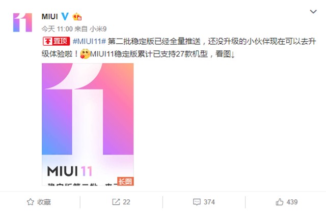 批推送,昨日,MIUI官网再次宣布第二批MIUI11稳定版可升级啦