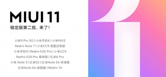 MIUI 11第二批稳定版支持机型包括:小米9 Pro 5G、小米手机6、小米MIX 2、Redmi