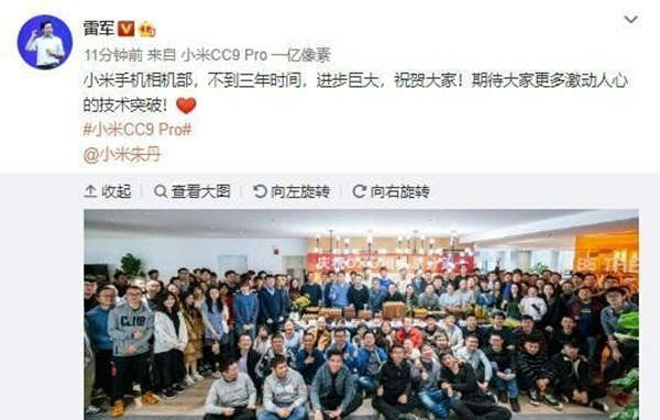 小米自发布的小米CC9 Pro登上DXO榜首之后,雷军可以说是兴奋异常,当年吹过的