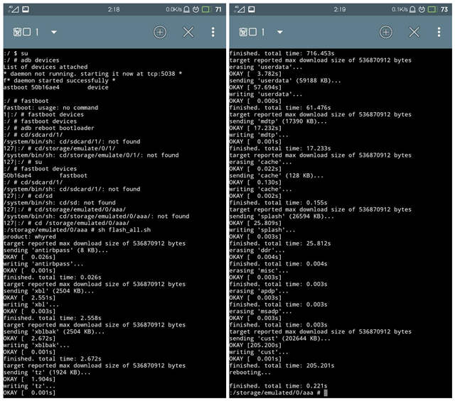 7.我没自动重启到rec,你可以手动,也可以命令以上就是利用手机给另外一台手机刷机救砖刷recovery全部教程,我们测试的是小米机型,