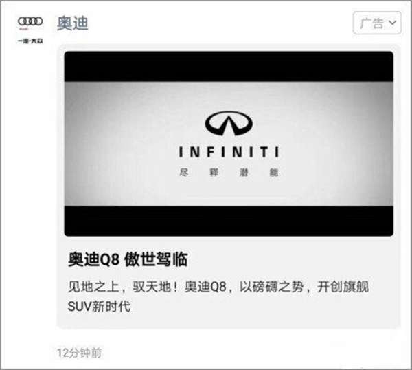 腾讯广告已于10点30分暂停,总曝光3959次,总花费202元。奥迪朋友圈错投风波之后,沃尔沃艾特 @奥迪 称“朋