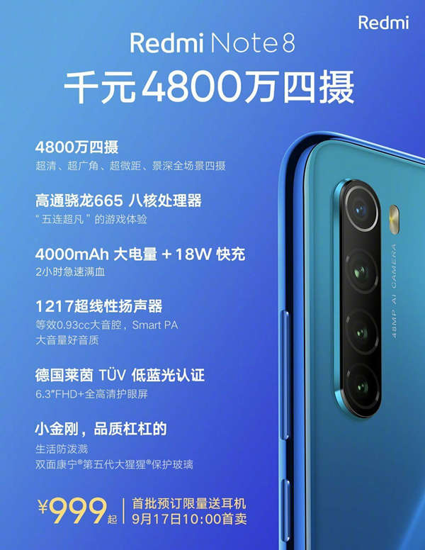官方公布Redmi Note 8 公布新配色:星云紫。将在11月18日上午10点全渠道开售。4GB+64GB、6GB+64GB版均有提供。由于Redmi Note 8已经开售,因此其外观设计和硬件配置已经没有悬念。配置方面:骁龙665处理器,1217超线性扬声器,内置4000mAh电池,18W快充与红外遥控,前置1300万美颜相机,后置4800万四摄组合。外观设计方面,采用的是目前主流的水滴屏设计,并且由于屏幕边框控制出色,因此在屏占比方面也有着90%不错的表现。而在机身背面其后置四摄模组位于左上角,实体指纹识别模块则在中轴线上方,而在配色方面,有了新配色的加入之后,该机共有多达4款的颜色选择。