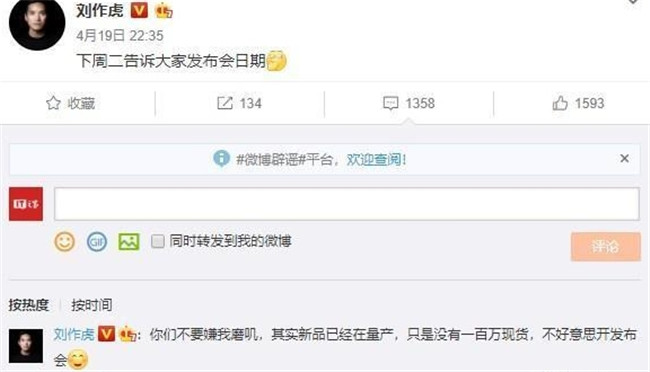 细节和量产情况,就在近日,直接微博回复网友:新品已量产 没有一百万现货不好意思开发布会。刘作虎的言下之意是,一加在开发布会的时候,新品备货