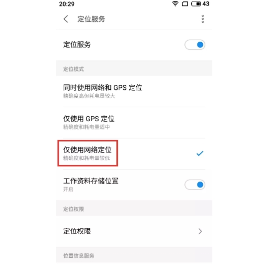 1、将定位服务设置成仅使用网络定位,这样一般的软件的定位服务不
