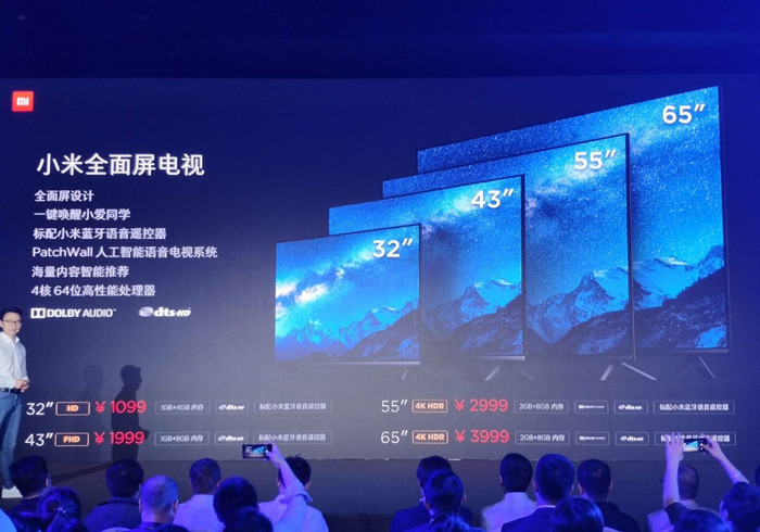 1.小米全面屏电视,分别有32英寸/43英寸/55英寸/和65英寸四个版本,售价方面,小米全面屏电视32英寸1099元、43英寸1999元、55英寸2999元、65英寸3999元,4月23号18点开始预约;
