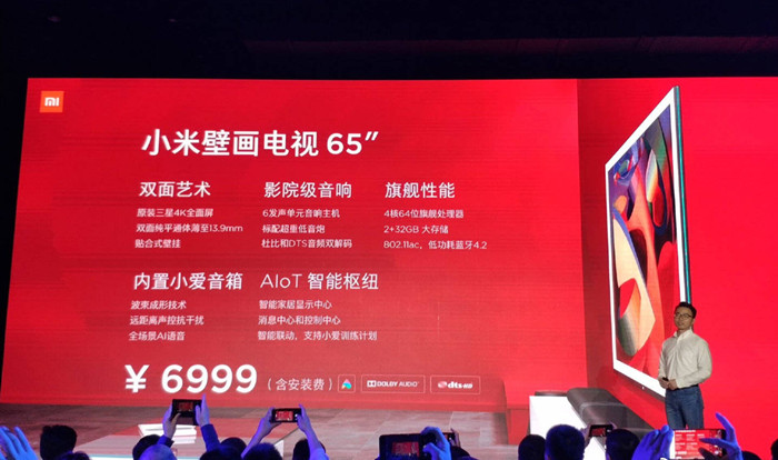 2.小米壁画电视,13.9mm厚度,双面艺术,通过MiPort连接线连接音响、主板和电源,最高支持18Gbps高清信号输出和400W高功率供电,Amlogic 4核64位处理器,2+32GB存储配置,主机内置6个发声单元,标配超重低音炮,支持杜比音效和dts HD解码,支持与小米AIoT产品连接,支持视频通话,售价6999元,4月23号18点预约;