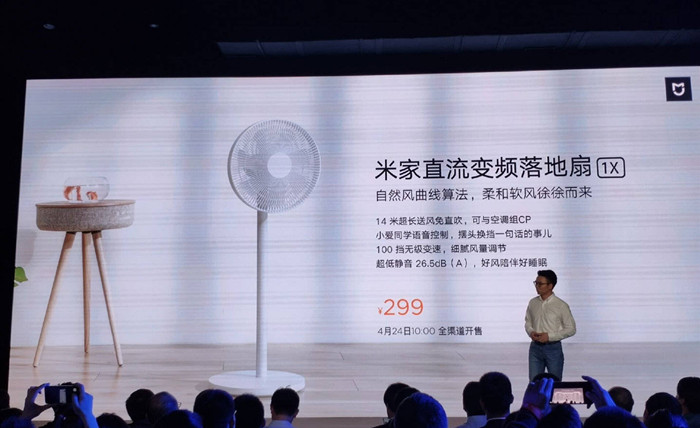 5.小米直流变频落地扇1X,自然柔风,空气扰动范围广,支持小爱同学控制风量与角度,售价299元;