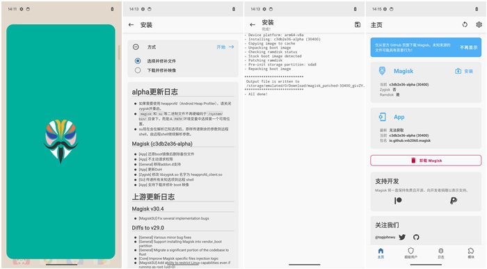 情况1:我们的手机已经有root权限,不管是其他版本的面具,还是内核KSU内核root权限,都不影响我们升级最新版阿尔法面具。在本页面下载最新的面具阿尔法版本的magisk,然后直接安装到你的手机上,出现什么权限申请,我们都直接点允许;如果当前是内核root权限,需要手动进入KSU,超级用户对阿尔法面具开启root权限。最后打开阿尔法magisk,选择直接安装,一路下一步,点击开始即可刷入最新版阿尔法面具